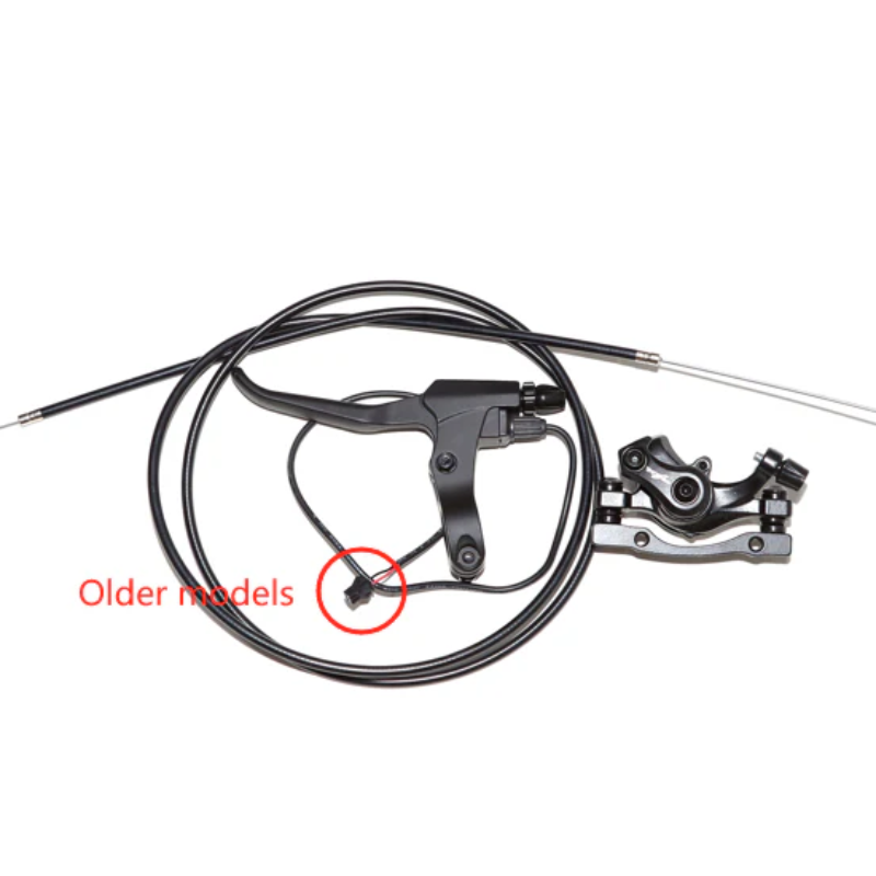 Roue avant : poignée de frein + câble de frein + frein à disque.