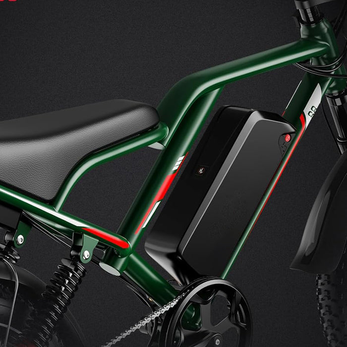 La S8 abbina pneumatici larghi da 20″×4″ adatti a tutti i terreni a una forcella anteriore avanzata e a sospensioni posteriori ammortizzate, offrendo stabilità, trazione e comfort senza pari. Dai sentieri rocciosi alle strade cittadine, ogni viaggio è fluido, controllato e pronto per l'avventura.